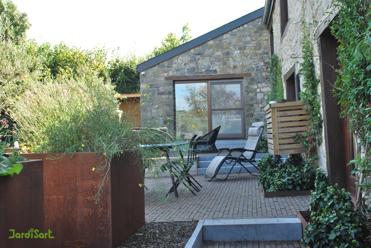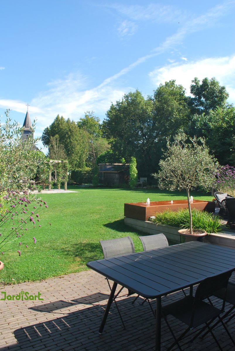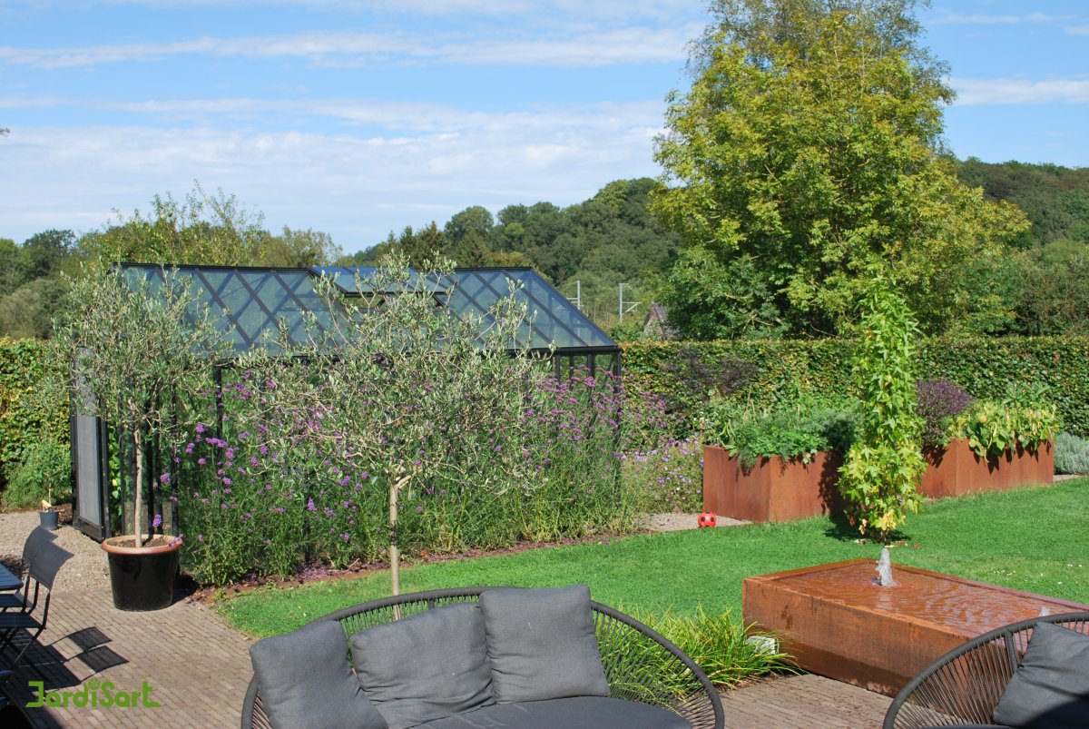 Le client souhaitait que ces deux points importants soient résolus tout en créant un jardin chaleureux, diversifié et de promenade, avec plusieurs terrasses pour profiter au maximum de son extérieur. L'objectif était de transformer ces contraintes en opportunités de design pour un espace extérieur accueillant et fonctionnel.
