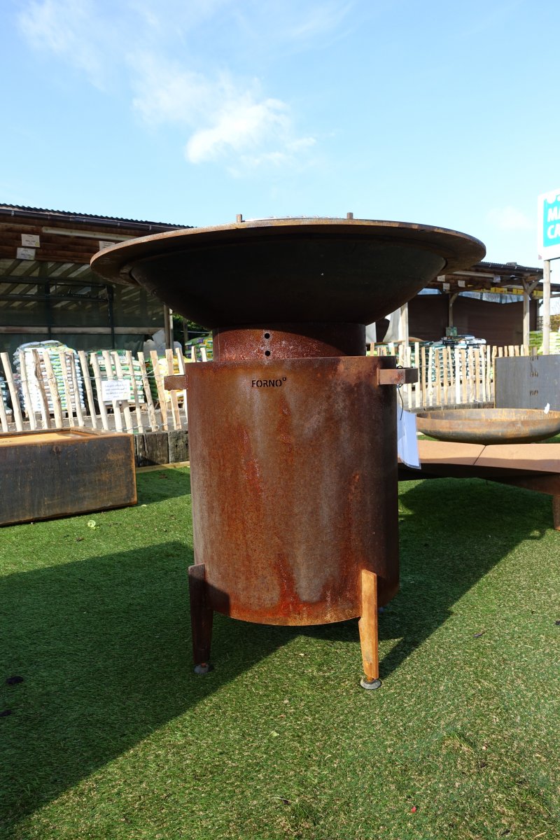 FORNO® est le nouveau produit pour préparer un repas sain à l’extérieur. Le bol à feu sphérique a une plaque de torréfaction plate ronde et épaisse que vous utilisez comme une sorte de teppanyaki ou de plancha. La plaque à rôtir a différentes températures de cuisson. Le milieu de la plaque à rôtir est plus chaud que l’extérieur, donc la cuisson est encore plus facile et vous pouvez servir tous les ingrédients ensemble. Le FORNO® est magnifiquement conçu et est une expérience spéciale pour faire l’expérience de cuisiner avec vos invités et une manière atmosphérique de cuisiner. Que vous cuisiniez des oeufs, que vous cuisiniez des légumes lentement, que vous grilliez un steak tendre ou que vous prépariez un plat de poisson, vous découvrirez avec le FORNO® un tout nouveau monde plein de possibilités pour cuisiner en plein air. Vous pouvez griller et cuire en même temps en utilisant la grille de barbecue incluse.