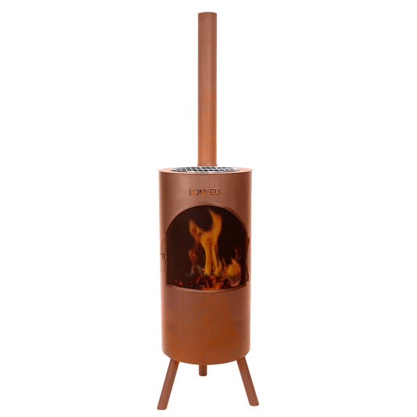 Le BonTino est une variante du feu de jardin BonGiano LP. Avec un diamètre de 35 cm et une hauteur de 153 cm, vous obtenez une grande cheminée avec grille de barbecue et wok dans le jardin