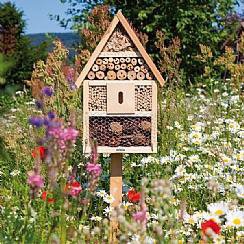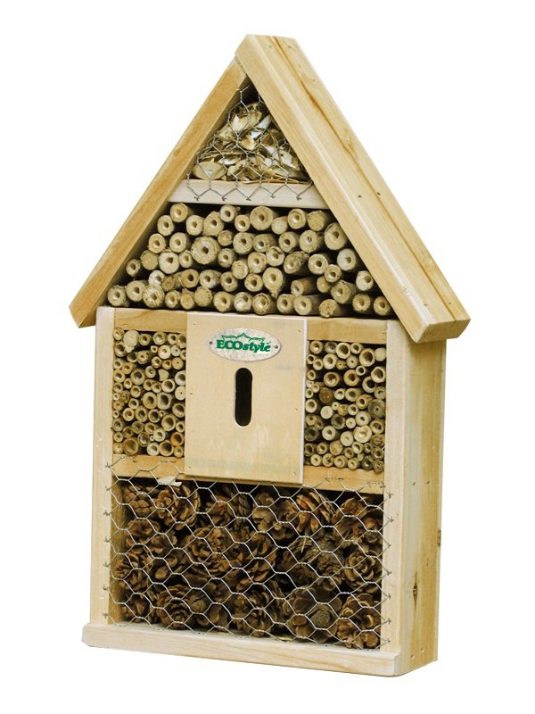 Beaucoup d’insectes sont très utiles pour l’homme et pour l’environnement; ils pollinisent les fleurs et ils apportent un équilibre biologique par l’élimination des ravageurs. D’un autre côté, les insectes jouent dans votre jardin un rôle important dans le cycle de la vie. La perturbation de l’habitat naturel, par exemple des abeilles sauvages et des chrysopes a considérablement réduits le nombre de nids et zones d’hivernages naturelles. Aux Pays-Bas et en Belgique certaines espèces d’abeilles sont menacées d’extinction! En été l’hôtel pour insectes abrite des insectes utiles, c’est un lieu de repos. En hiver l’hôtel fournit une zone d’hivernage. Les insectes utiles fond un nid dans l’hôtel et cherchent leur endroit optimal dans une des 'chambres'.
