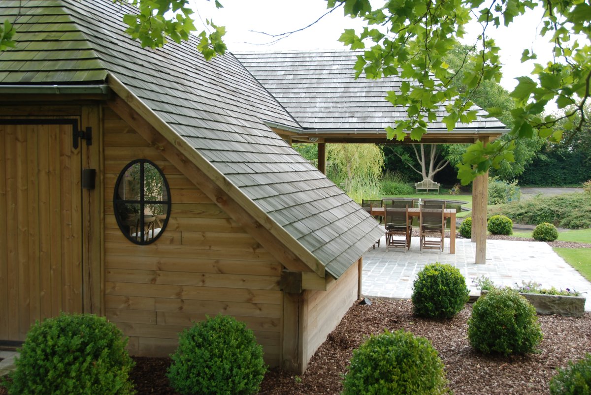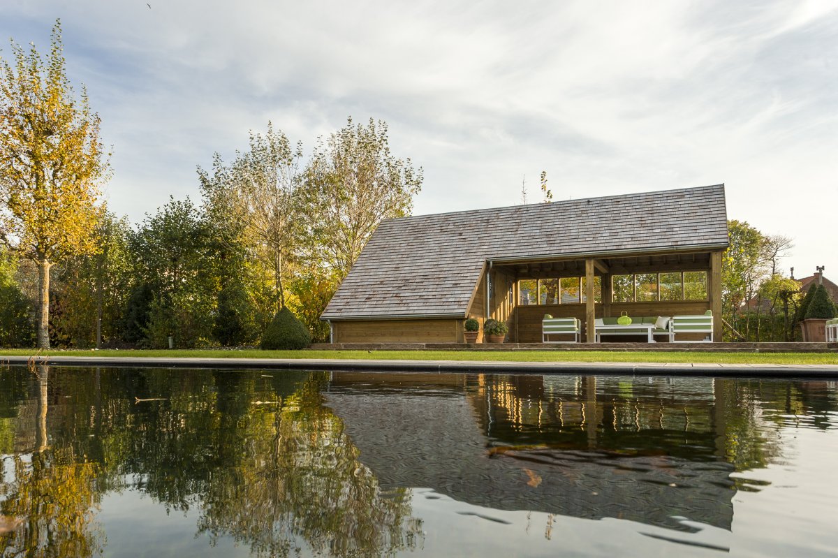 Un carport durable pour une voiture ou plutôt un poolhouse ouvert indépendant avec toit à double pente.