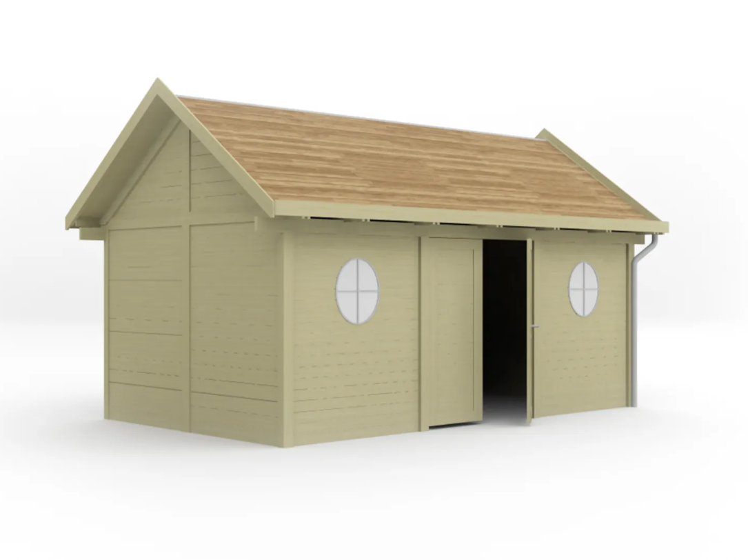 Il est également équipé d'un toit en bardeaux de cèdre. Au début, la couverture de toit sera de couleur miel mais à long terme, elle deviendra grise en raison de l'exposition à la pluie et au soleil.
