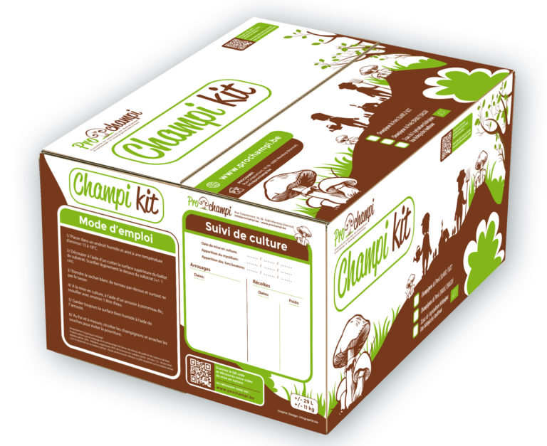 On a le plaisir de vous annoncer le retour de CHAMPI KIT c’est un kit de champignons de Paris blancs ou bruns au choix disponible aussi en BIO. Une boîte cartonnée bien décorée à installer directement dans sa cuisine.
