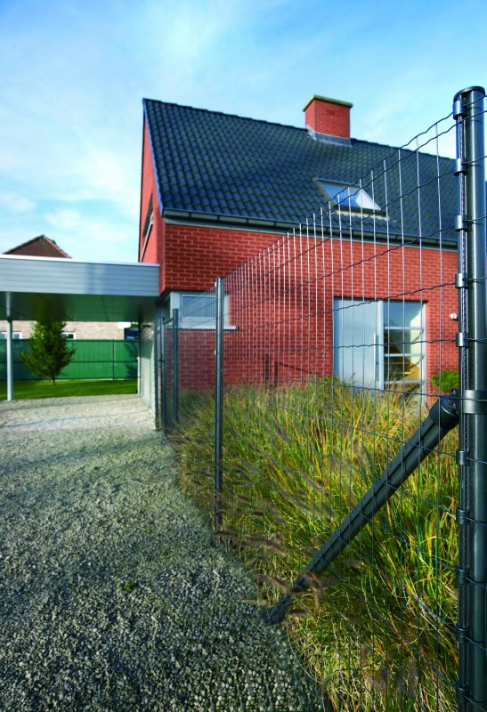 Grillage galvanisé, soudé à chaque intersection et ensuite plastifié. Les fils horizontaux sont crantés à chaque maille. En haut et en bas à 25.4mm, le grillage dispose d'une double lisière. Combinaison de fils horizontaux doux