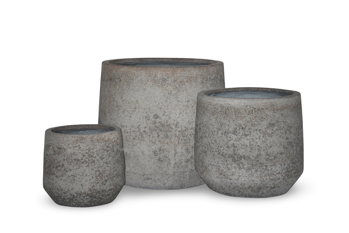 Belle collection de pots d'extérieur ou cache-pots, différentes formes et dimensions.