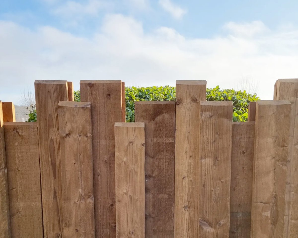 L'écran de jardin Brut est constitué de lamelles (de pin non raboté traité thermiquement) en différentes largeurs et hauteurs. Un écran de jardin présentant une diversité ludique au niveau de la hauteur et de la profondeur et offrant un rayonnement un peu “plus robuste”.