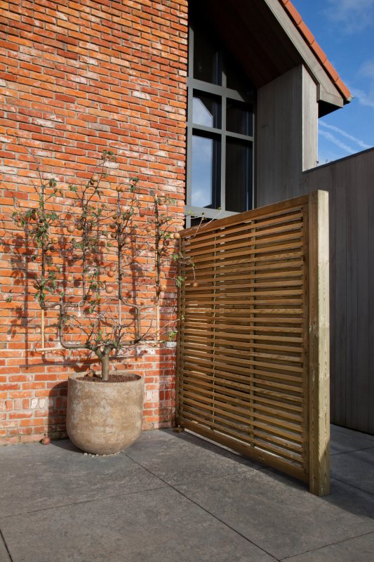 Accessoires à ajouter : poteaux 9x9cm, fixations en V ou en l
