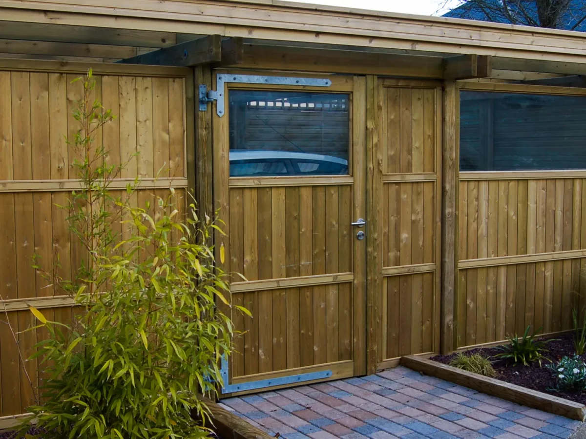 Vous pouvez utiliser cette porte comme porte de jardin ou pour votre carport. La porte comprend de base, 3/3 constitués de lattes en bois horizontales. Vous pouvez toutefois parfaitement personnaliser cette porte en choisissant :