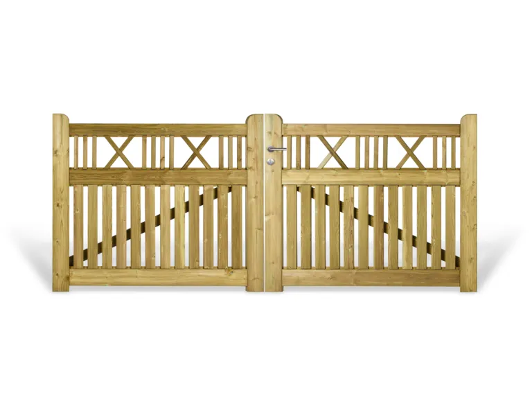 Cette double porte de jardin en pin rouge du Nord imprégné est très solide et est prévue de croix décoratives très élégantes. Le portail simple existe aussi pour le Vivaldi.