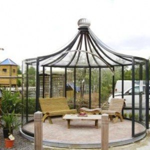Modèle expo : diamètre : 3.94m ; ht côté : 2.10m ; ht faîtière : 3.18m RAL 7016.