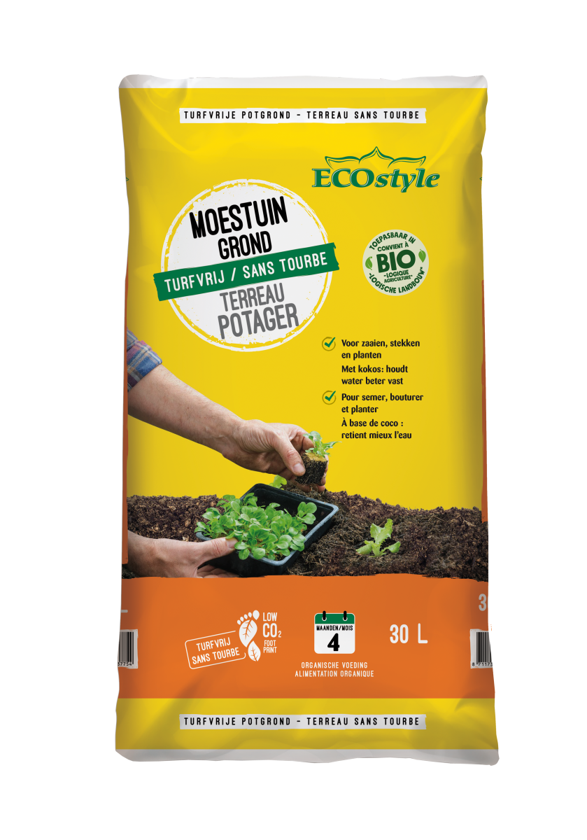 - terreau Bio sans tourbe à base de fibres de coco : un résidu de noix de coco est valorisé et transformé en terreau meuble et aéré, permettant de réduire de moitié le nombre d'arrosages