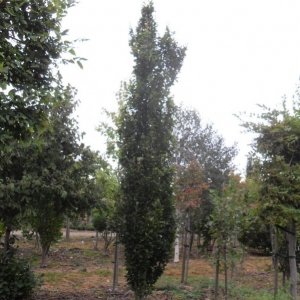 Arbre au port étroit et élancé au feuillage vert foncé.