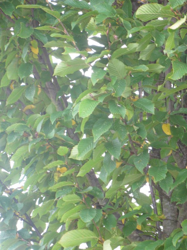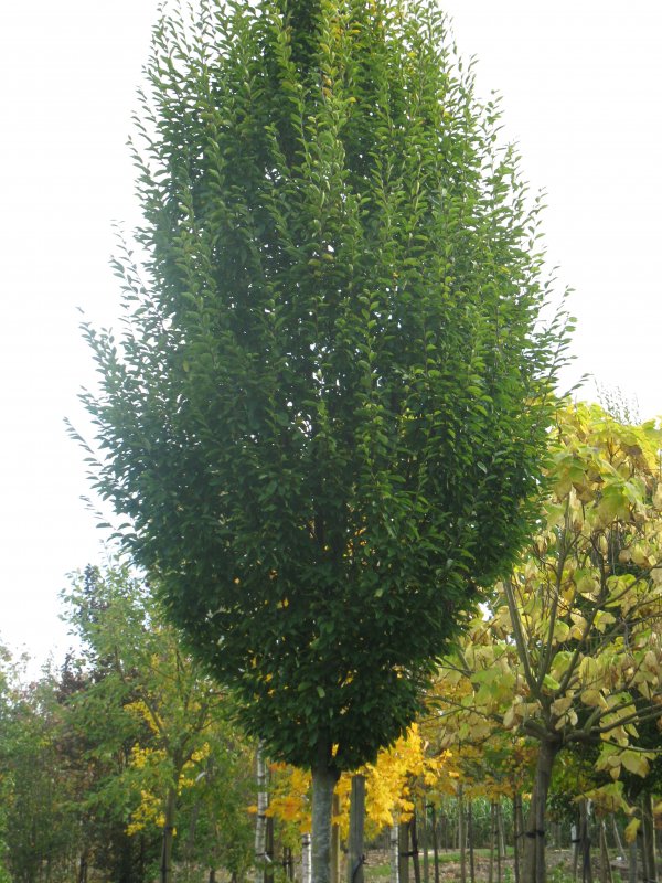 Arbre compact et fastigié. Feuilles ovales vert moyen, devenant jaune orangé en automne et restant sur les rameaux, jusqu'à la fin de l'hiver. Chatons femelles verts.