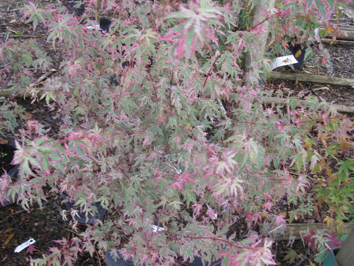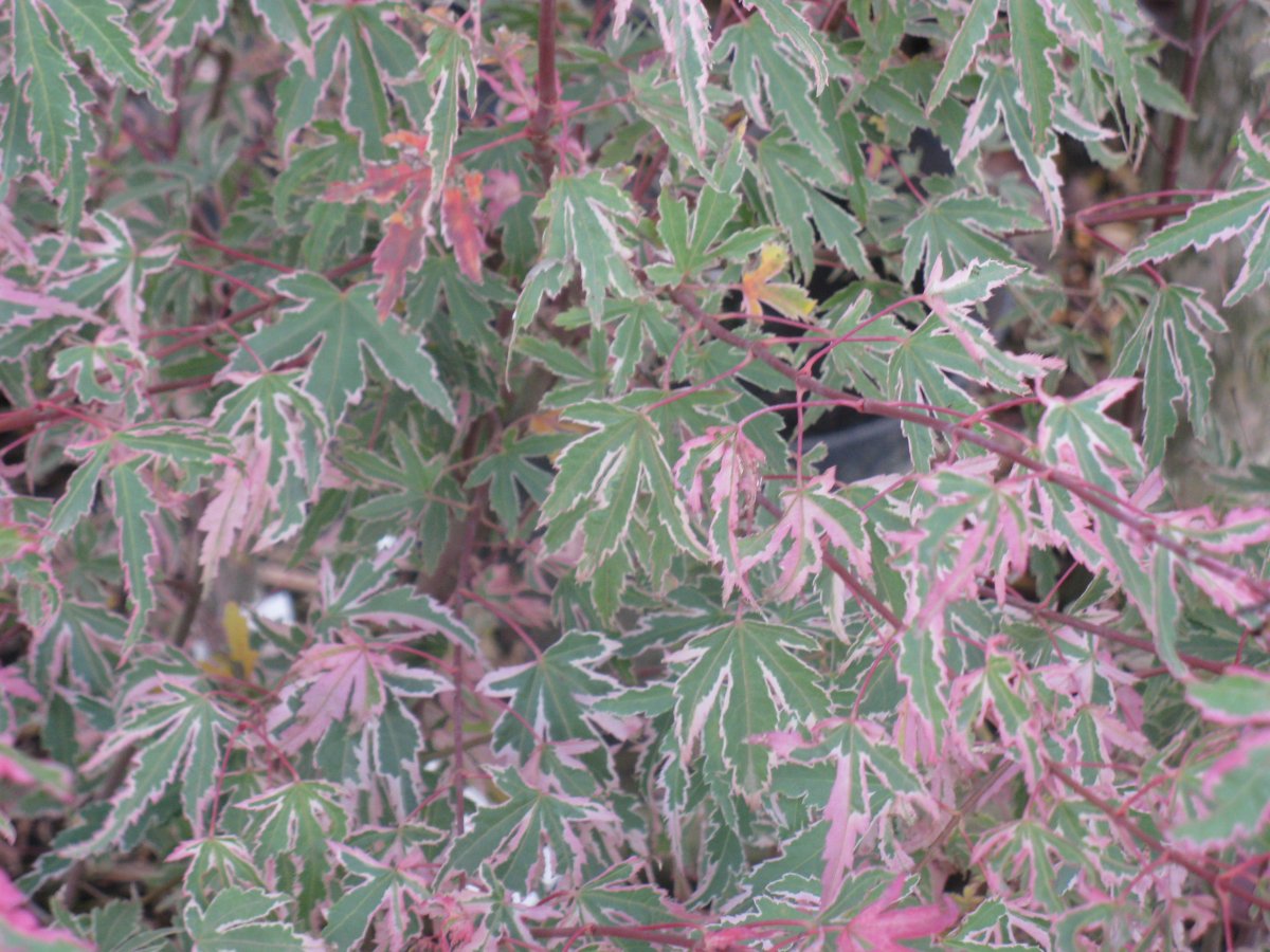 Ses feuilles débourrent rose pâle et sont caduques. Elles deviennent vertes marginées de rose, puis virent au jaune et rose en automne. Port buissonnant. Intérêt printanier et automnal.
