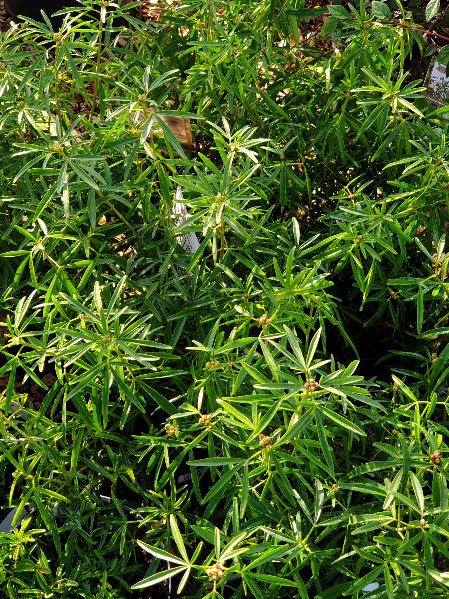 Feuillage persistant, plus fin que celui de l'espèce type, plus coriace, donnant un aspect exotique à la plante. Variété très florifère en mai-juin, à grosses fleurs blanches. Eviter les excès d'eau.