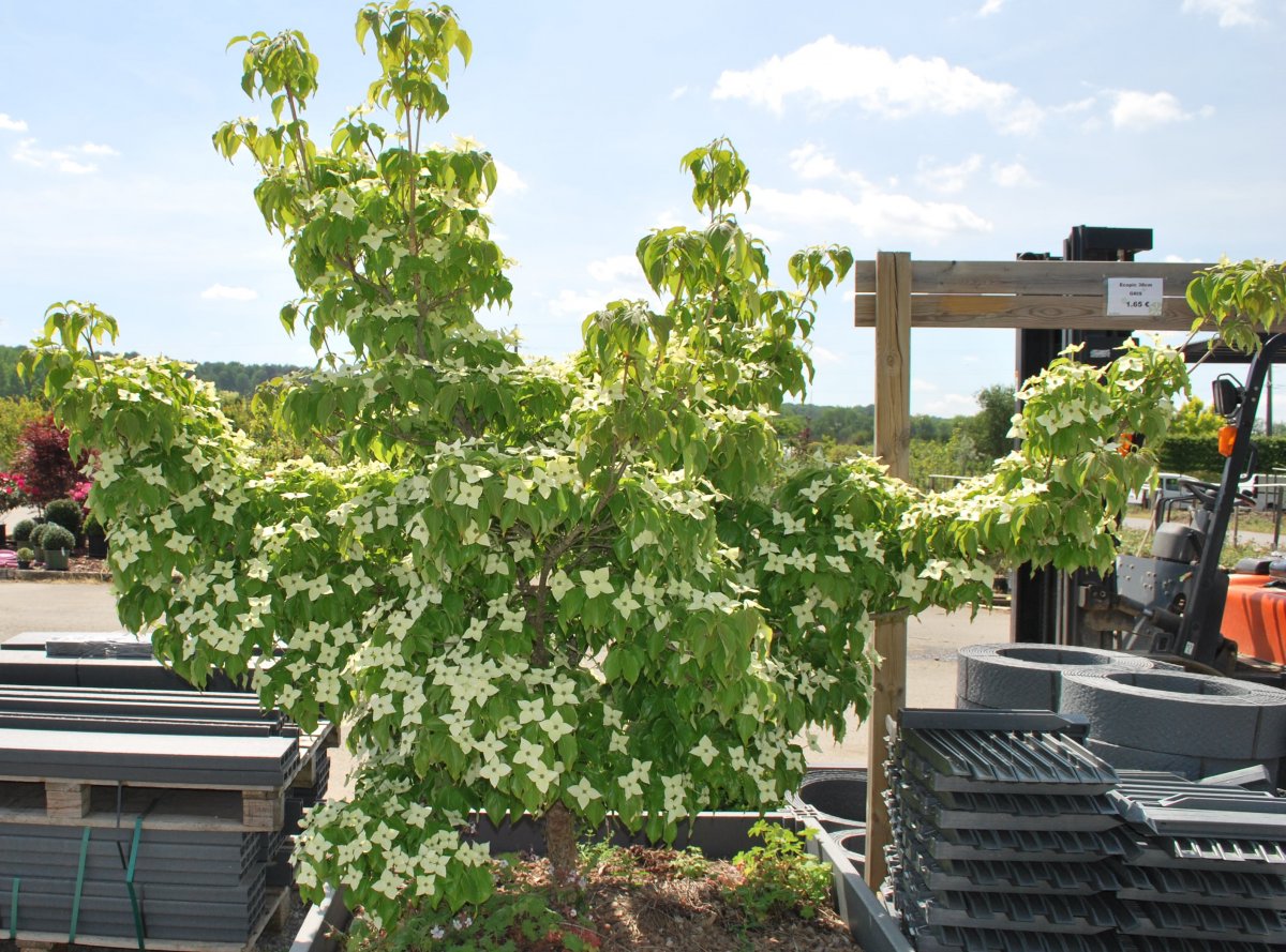 Ce grand arbuste, au feuillage caduc et au port étalé, nous propose en cette période de délicates fleurs blanches autour d’une tête jaune verdâtre.