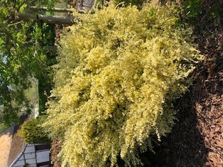 Feuillage caduc peu abondant, mais rameaux raides vert foncé toute l'année. Hauteur 1.50m, diam. 1.20m. Forme arrondie. Abondante floraison en mai-juin.Ces magnifiques plantes supportent les sols secs. Redoute les situations trop ombragées. Tailler court après la floraison.
