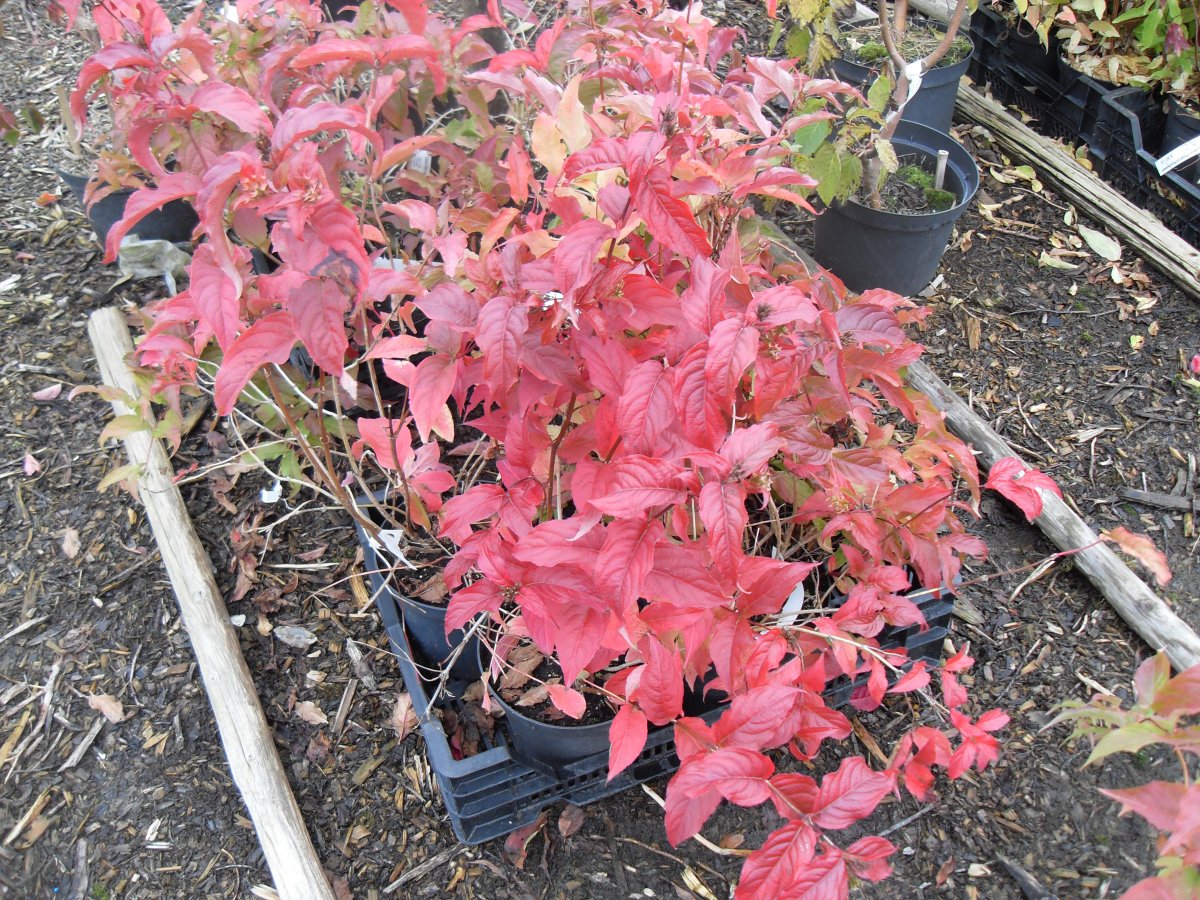 Cet arbuste a un feuillage pourpre qui devient écarlate en automne. ! Il est drageonnant. Fleurs jaune soufre en été.
