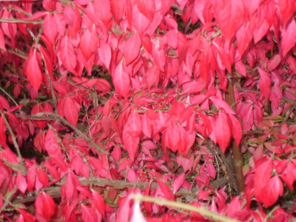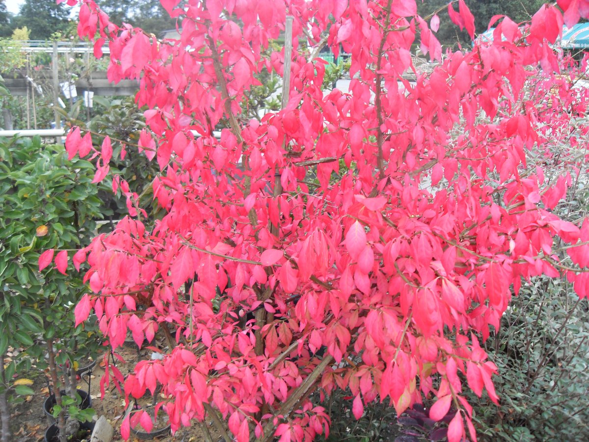 Feuillage vert puis rouge foncé en automne porté par des rameaux quadrangulaires à ailes subéreuses.