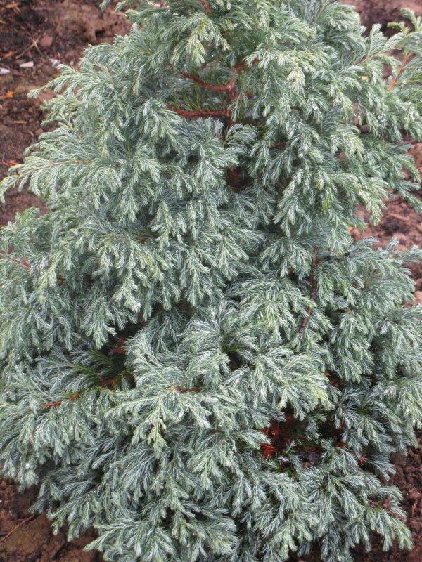 Forme un petit cône. Développement moyen. Feuillage plumeux gris-bleu argenté, légèrement violet l'hiver. Rustique, il redoute les excès de soleil qui brûlent l'extrémité des pousses, ainsi que les sols trop calcaires. Il faut tailler légèrement les extrémités pour lui conserver une forme compacte et régulière. Très intéressant isolé ou en bac.