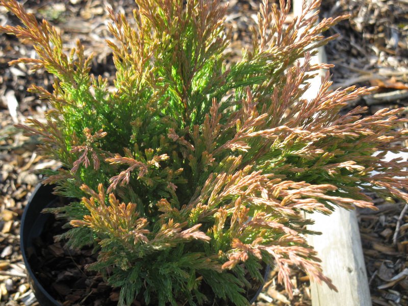 Feuillage vert et orange en automne. Persistant. Port étalé en été. Rustique jusqu'à moins 15°C.