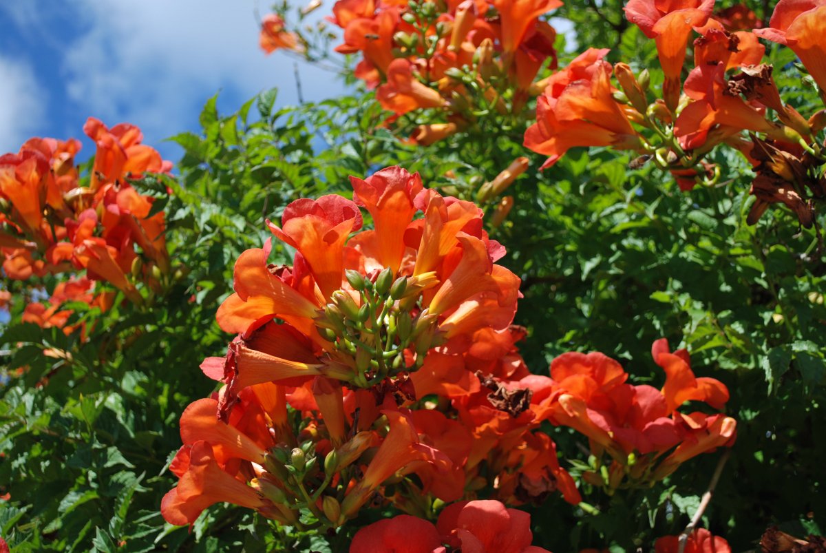 Lianes s'accrochant par des racines adventives, très vigoureuses, mais pouvant être maintenues plus basses grâce à une taille appropriée.