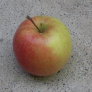 Fruit : grand et haut, jaune à joue rouge, excellent à croquer.