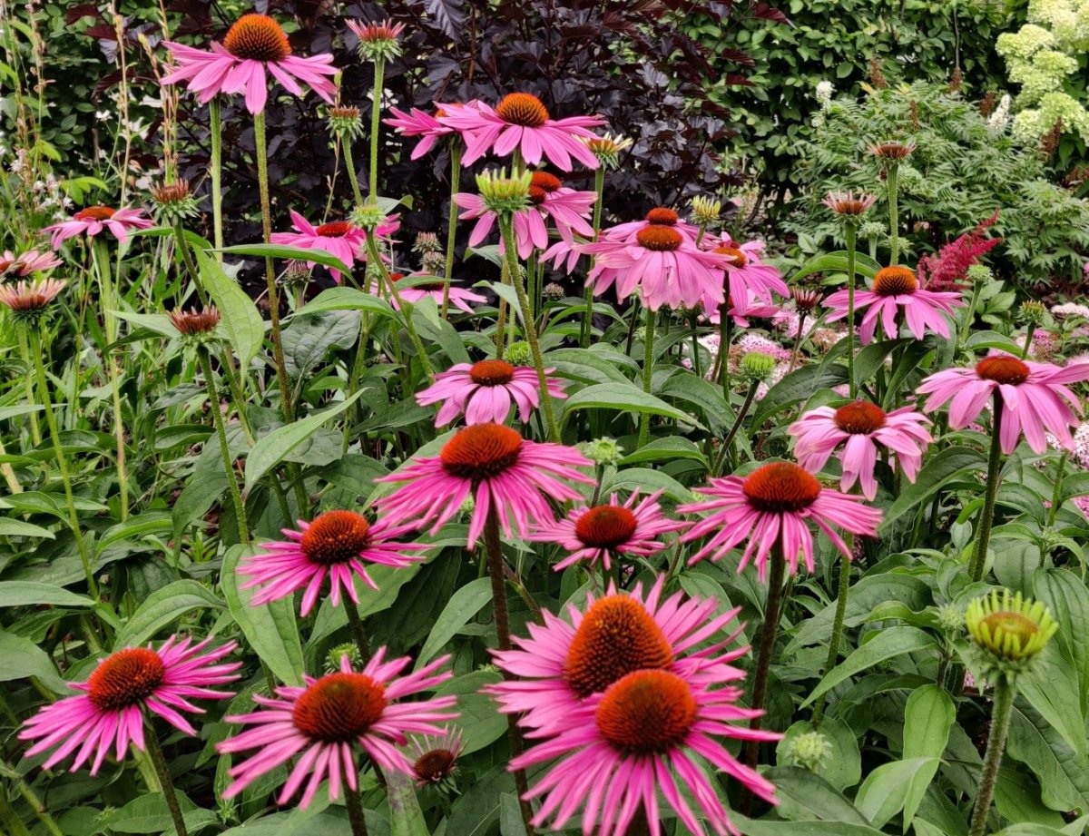 Port dressé. Feuilles ovales, pointues, rugueuses et vert sombre. Hampes raides, peu ramifiées, rougeâtres. Capitules brun orangé au centre. Ligules rose pourpré déployées à plat et rejetées vers le bas en fin de floraison.